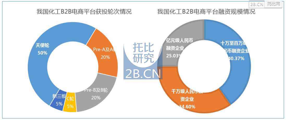2.3我国化工B2B电商平台资本状况 据托比研究企业库的统计数据可知,截至目前在我国化工行业中以B2B电子商务模式为切入点进入化工领域的企业中有20家企业有了资本动作,占据整个化工B2B企业的35.7%,其中获得融资的时间多集中在2014年以后,共吸取资本方的金额约12.7亿元人民币。 图2.3:我国化工B2B电商平台资本状况 从获投轮次的角度来看,天使轮的融资企业占比达到了50%,Pre-A及A轮融资企业占比为20%,这两部分相加总和占比70%,占整个获投融资的化工B2B企业的三分之二以上比重。托比研究认为,我国资本机构将大量的资本投入到这个行业的初始阶段(天使轮、Pre-A及A轮),说明资本市场对我国化工B2B领域的赛道抱有及其大的信心,同时也说明我国化工B2B电商也处在发展的初始阶段,对于新进来的创业者来说这个行业的窗口期还存在。在Pre-B及B轮的企业占比20%,与Pre-A及A轮融资企业占比相同,说明我国整个化工B2B电商平台在资本市场的整体成长状况属于成长型,在B轮以上的企业相对较少,只有摩贝获投C轮和我的塑料网登陆新三板,说明整个化工B2B电商平台还处于快速发展期还并未出现像钢铁行业的“找钢模式”领头的企业。 从融资规模上来看,吸金超过亿元及以上人民币的企业共四家,分别是找塑料网、快塑网、摩贝、化塑汇,其中找塑料网和快塑网均以3亿元人民币以上的融资领衔,两家企业均以自营加撮合的商业模式垂直化工塑料行业。千万级与百万级的融资规模基本上持平,两者共占据的整个融资规模的76.47%,说明行业本身体量的大规模性要求了融资规模整体较大。 另外依据公开资料对获投企业的资本方统计得知,第一,以产业资本的形式进入化工B2B电商平台的苗头开始出现比如找钢网进入找油网的天使轮、化塑汇进入塑商汇的Pre-A轮、慧聪网内部孵化创业项目买化塑;第二,风险投资机构多集中在天使轮领域,其中德沃基金和险峰华兴在天使轮进行了各累积发生两次的资本事件;第三,复星昆仲成为唯一一家累积投资化工B2B企业的3次资本机构。 整体而言,托比研究认为,第一,我国化工B2B领域还 |